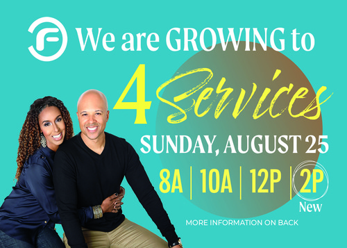 As of Sunday, August 25th we've added an additional service time at 2pm. Our new service times will be 8am, 10am, 12pm, and 2pm.